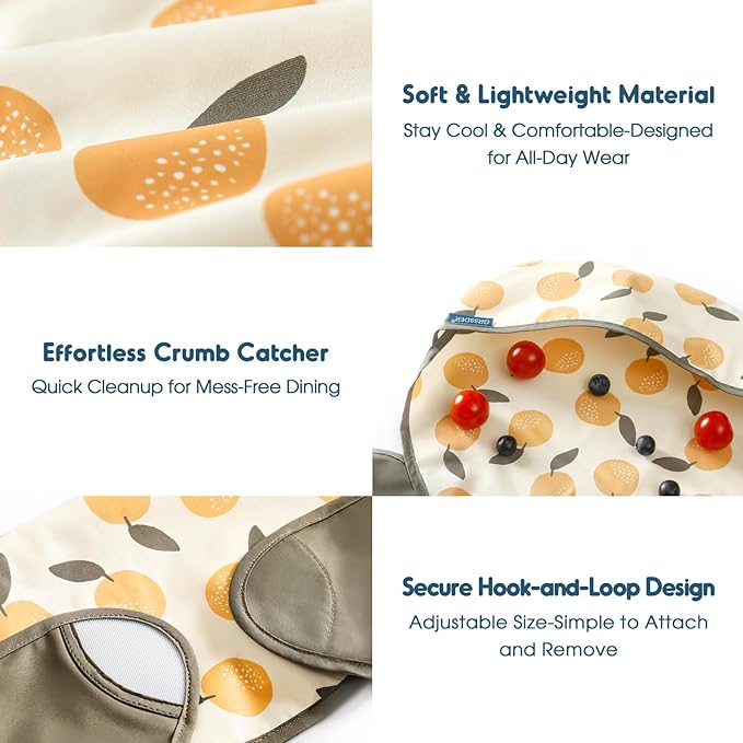 - ADORABLE AND FUNCTIONAL DESIGN: GRSSDER mess-proof bibs set include 3 different original adorable patterns, making your little ones more cuter and cheerful when feeding. Designed for comfort and convenience, our waterproof bibs keep your little one's clothes clean during mealtimes, playtimes and messy adventures. The deep catch-all pocket make it easy to grab every crumb, splash, and paint drip.