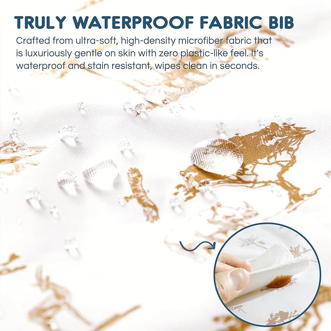- ULTRA SOFT AND WATERPROOF MATERIAL: GRSSDER waterproof baby bibs are crafted from silky-soft, lightweight and high-density microfiber fabric with high quality TPU material that is luxuriously gentle on baby senstive skin with zero plastic-like feel. It's waterproof and stain resistant, wipes clean in seconds. These waterproof bibs for baby boy or girl are designed to keep messes at bay.
