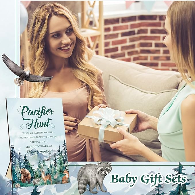 - Nice and Elaborate Combination: there are 50 baby shower pacifiers, 1 wooden cool baby shower game hunt sign in the package, enough for you to plan your baby shower party and to share with your friends and family