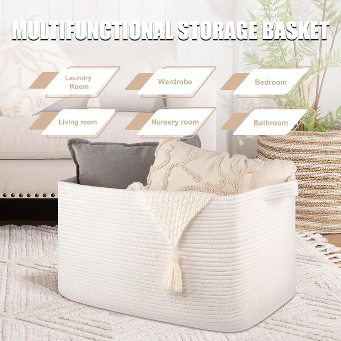 - Natural Cotton: SIXDOVE high-quality large blanket basket is made of cotton rope, No Nasty No Disgusting Smell, safe for Intimate Clothing. In addition, this woven basket for storage has no sharp edges and a hard surface, safe for kids, elders, and pets