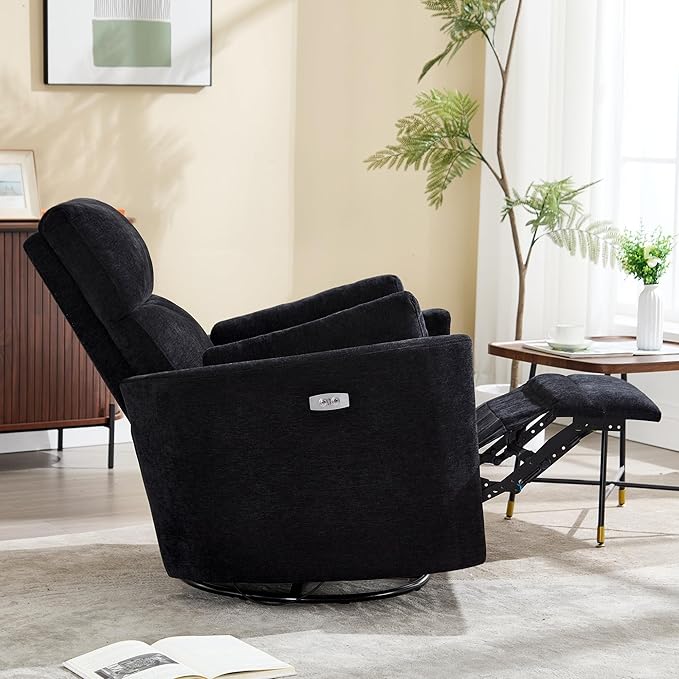 Recliner Swivel Glider Electric Rocking Chair with USB Port,Multifunction Upholstered Power Recliner Rocking Chair for Living Room Bedroom Nursery Adult with 2 Pillows(Black, Power-Driven)