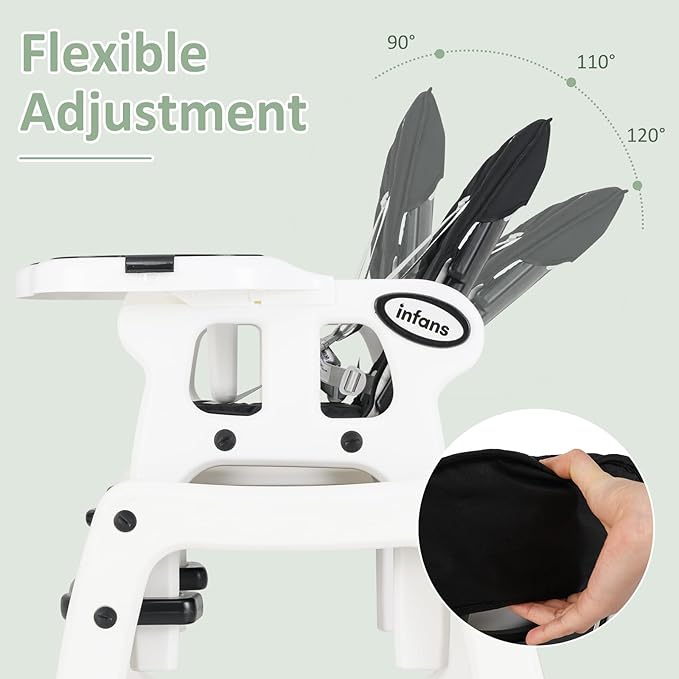 - Adjustable Seat Back & Trays: Our silla de comer para bebe has a user-friendly design that the seat back is adjustable with 3 positions. The 3 lever positions are ideal for baby eating, feeding and relaxing. The distances between the trays to the seat back are also adjustable with 9ββ to 12ββ to meet different needs. With such scientific structure, our infant baby highchair can make babies to use more comfortable.