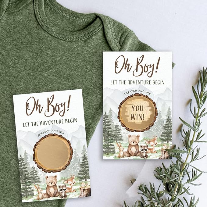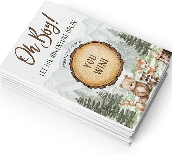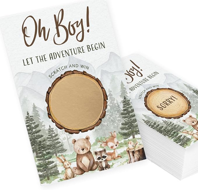 - Baby Shower Fun: Simple scratch-to-reveal game that adds excitement for guests of all ages, featuring adorable woodland creatures