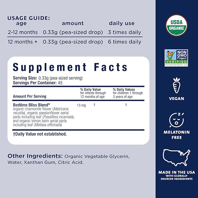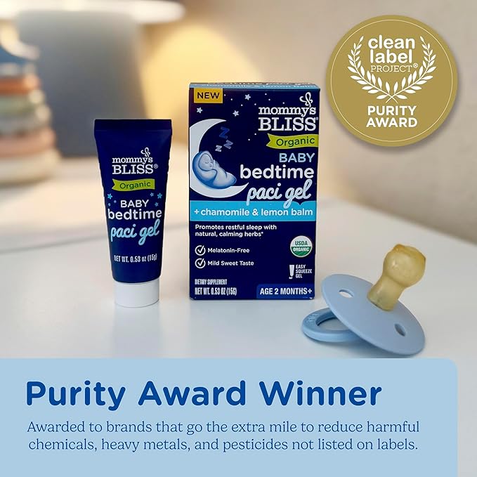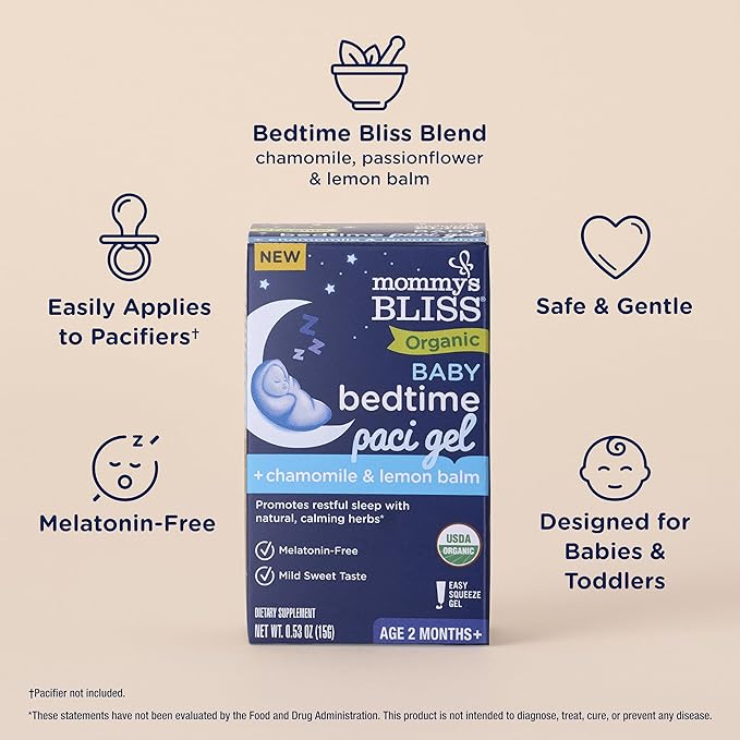 - Organic Baby Bedtime Paci Gel: A gentle, melatonin-free formula that promotes restful sleep* for infants 2 months and older with natural, calming herbs.*