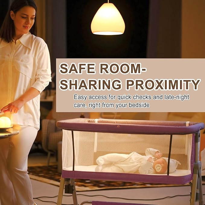 - EASY TO MOVE & PORTABLE: This baby bassinet comes with 4 wheels with brakes that you can smoothly move the bassinet to any room without disturbing your baby, making it convenient for mothers to do their own things at any time. Foldable design for easy storage, allowing you to travel with your baby and provide them with a familiar sleeping environment