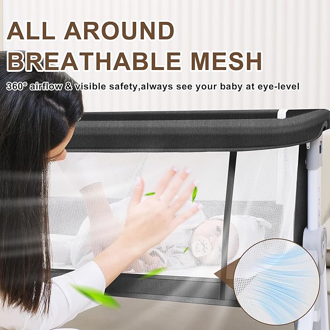 - 4-SIDED BREATHABLE MESH DESIGN: Our baby bassinets bedside sleeper features breathable mesh all sides for excellent ventilation. And mom can easily observe the baby via the mesh. The mosquito net keeps mosquitoes away, making it ideal for outdoor use. The bassinet bedside sleeper included mattress combines high-density foam and fiber mattress panels to protect the spine