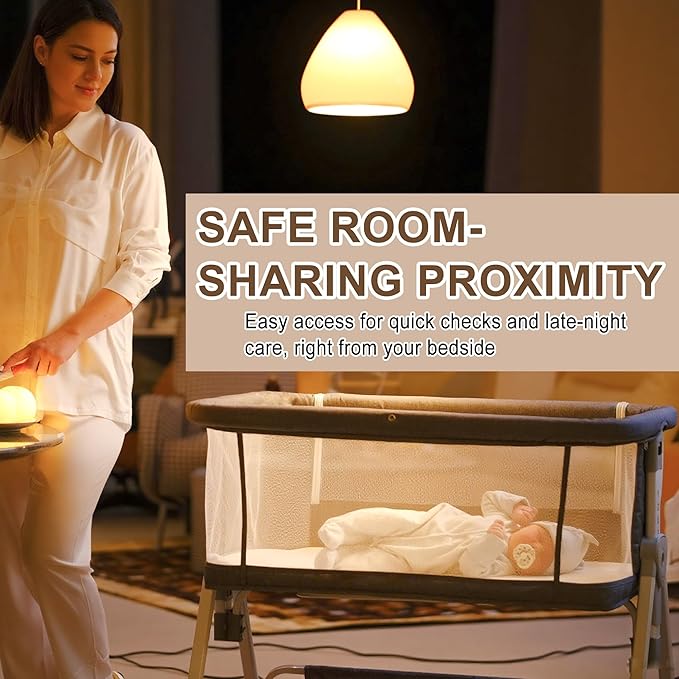 - EASY TO MOVE & PORTABLE: This baby bassinet comes with 4 wheels with brakes that you can smoothly move the bassinet to any room without disturbing your baby, making it convenient for mothers to do their own things at any time. Foldable design for easy storage, allowing you to travel with your baby and provide them with a familiar sleeping environment