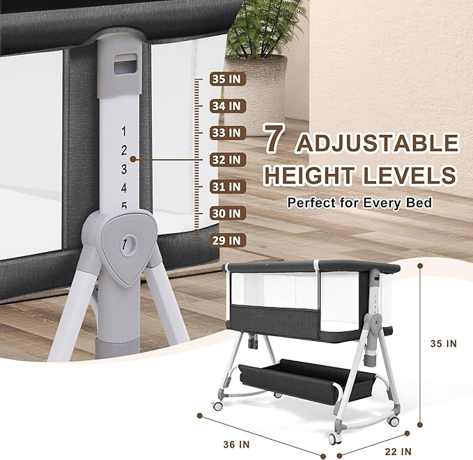 - ADJUSTABLE HEIGHT: Donpemu bedside bassinet for baby can be easily adjusted in 7 positions to fit the height of the king bed and mother,provide comprehensive care and protection for baby. Our bedside bassinet perfectly fits the height of most beds.
