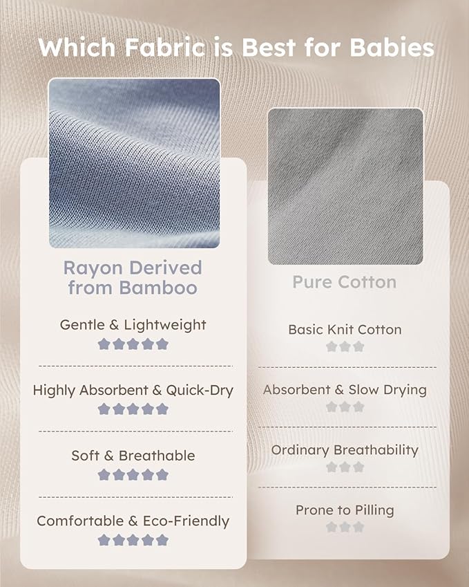 - Ultra-Soft & Natural Fabric - Using viscose derived from bamboo material, this baby sleep sack 's fabric is incredibly soft, breathable, and moisture-wicking, ensuring comfort in all climates—ideal for babies and sensitive skin. Naturally renewable—grows 1 yard/day, Supports a healthier life, gentle for babies, kind to Earth.