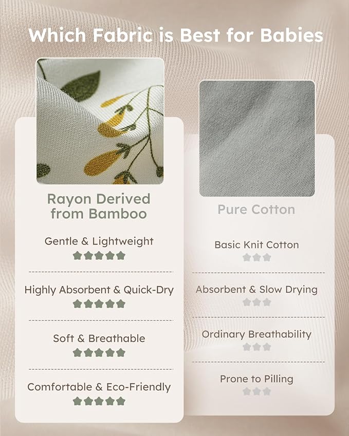 • Ultra-Soft & Natural Fabric - Using viscose derived from bamboo material, this baby sleep sack 's fabric is incredibly soft, breathable, and moisture-wicking, ensuring comfort in all climates—ideal for babies and sensitive skin. Naturally renewable—grows 1 yard/day, Supports a healthier life, gentle for babies, kind to Earth.