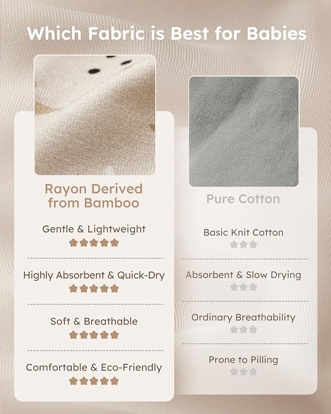 - Ultra-Soft & Natural Fabric - Using viscose derived from bamboo material, this baby sleep sack 's fabric is incredibly soft, breathable, and moisture-wicking, ensuring comfort in all climates—ideal for babies and sensitive skin. Naturally renewable—grows 1 yard/day, Supports a healthier life, gentle for babies, kind to Earth.