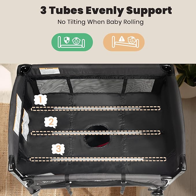 - Easy Assembly and Portable to Transport - No tools is needed for the assembly. Comes with a carry bag, you can take it out for travel or go for grandparents visit freely with its compact folding design. Its durable frame makes it perfectly suited for travel and the push-button fold allows you to break it down quickly and hassle-free.