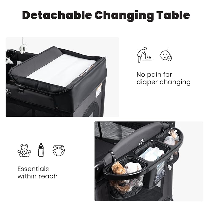 - Make Diaper Changing A Breeze - No need to purchase an extra changing table. Equipped with a 3-compartment side storage basket as well, diapers can be convenient and neatly organized. Besides, you can accommodates toys, bottles, tissues, etc. for nighttime feedings.