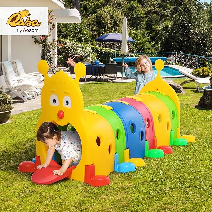 Qaba Caterpillar Tunnel, Toddler Tunnel for Kids Crawl and Climb Through, Kids' Play Structure Indoor Outdoor, 6 Sections, Multicolored
