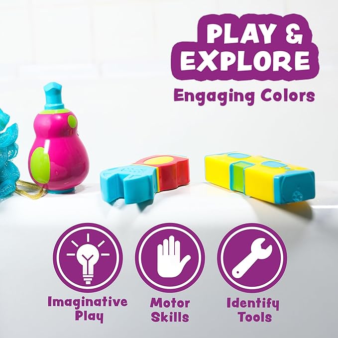 - PLAY & EXPLORE: Spark imaginative play, create bath games & identify tools with kids bath toys! Squeezable designs help develop fine motor skills & vibrantly colored kids tool set keeps kids engaged.