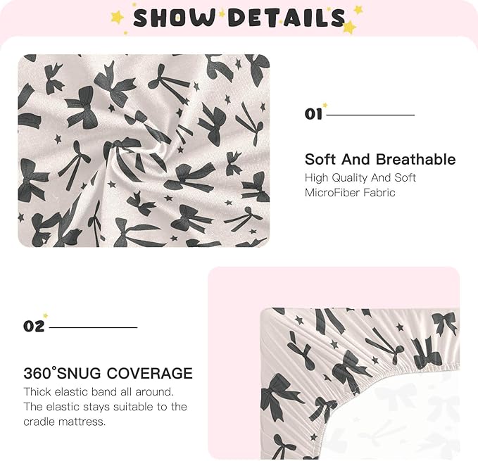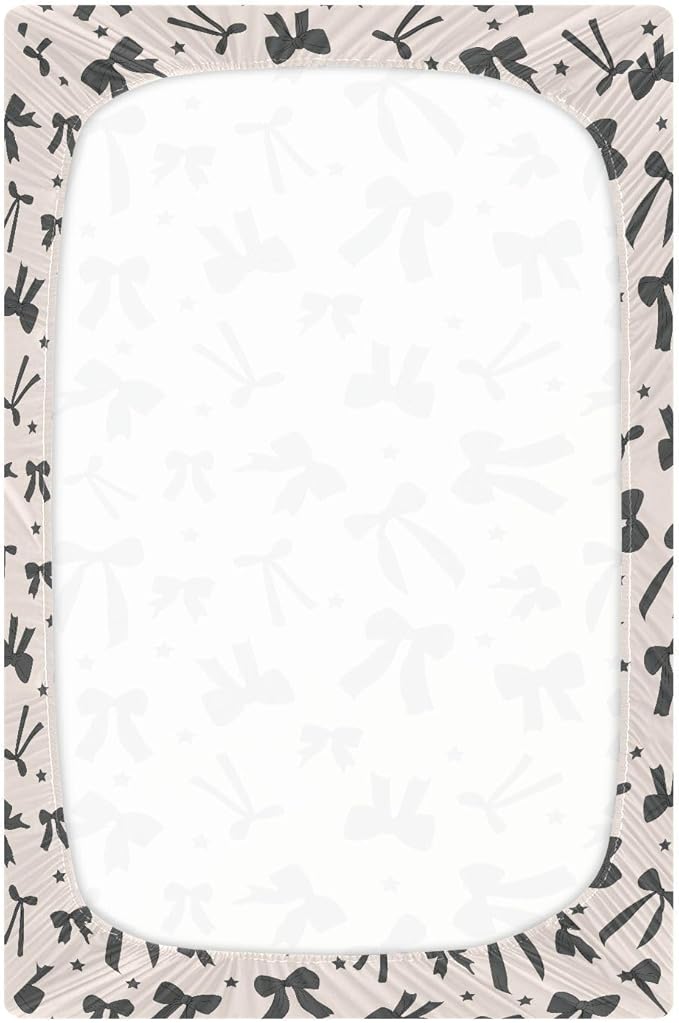 Baby Crib Sheets Black Cute Bow Crib Sheets for Boys Girls,Neutral Bassinet Toddler Bed Play Sheets Breathable Soft and Portable 52 * 28 * 9in