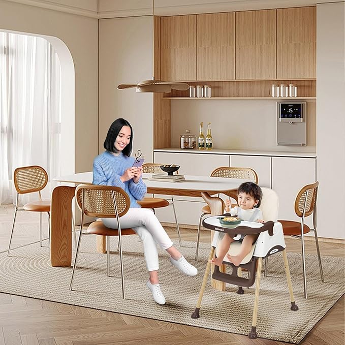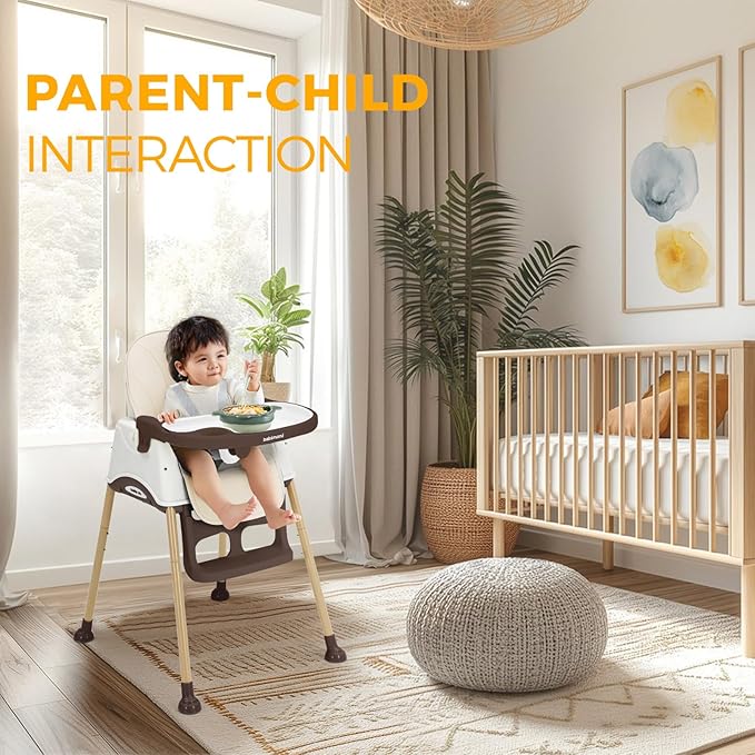 - Multiple Safety Protections: Sturdy steel tubes and a golden triangle design prevent tipping. The adjustable 5 point harness high chair ensures your babyโs safety, making this highchair a top choice for parents.