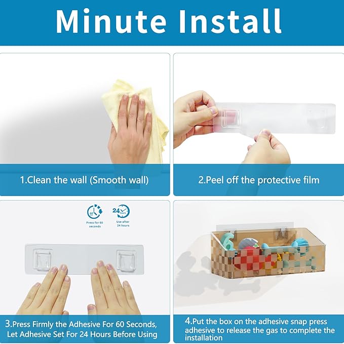 - No Drilling Required: This bath toy organizer comes with strong self-adhesive tape, so there is no need to drill holes in the wall, and there is no need to worry about it falling. In addition to hanging on the wall, it can also be placed on the countertop to store other sundries and maximize the storage space.