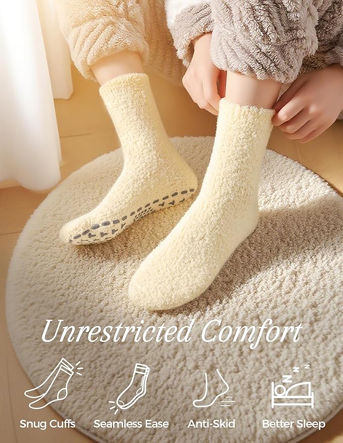 - Cloud-like Softness and Warmth: Indulge your feet with incredibly soft microfiber fuzzy socks that feel like stepping on a cloud, for exceptional warmth and coziness
