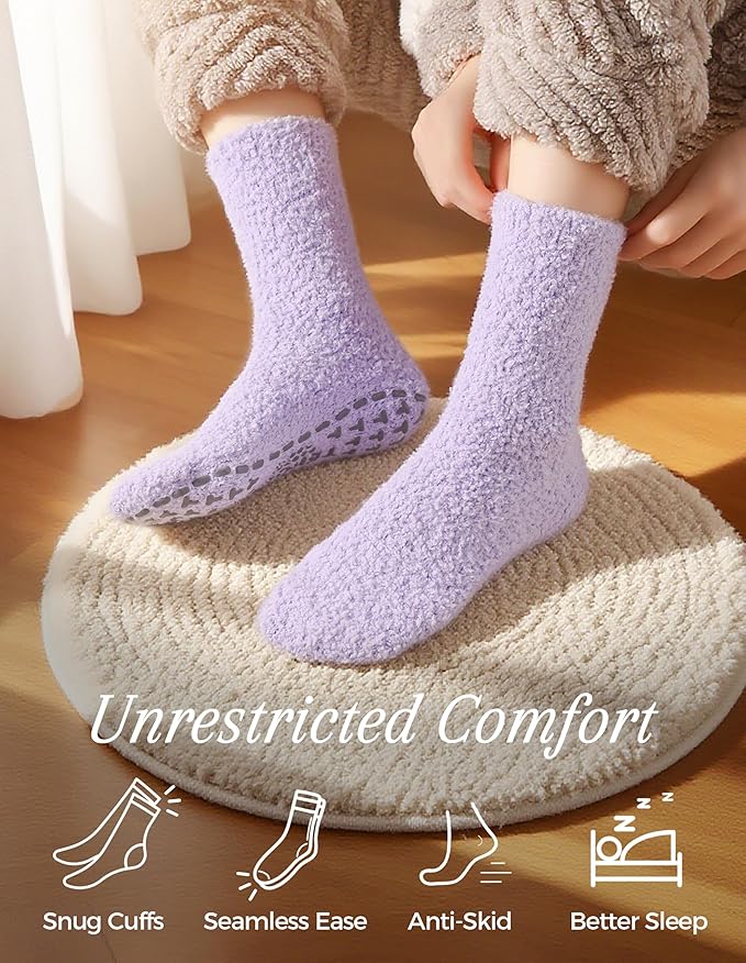 - Cloud-like Softness and Warmth: Indulge your feet with incredibly soft microfiber fuzzy socks that feel like stepping on a cloud, for exceptional warmth and coziness