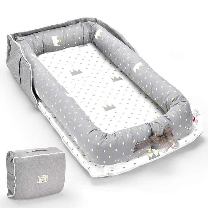 Infant Lounger, Baby Nest for Newborns, Portable Breathable Baby Lounger Adjustable U-Shaped Safety Bumper for Cozy Comfort - Crown Ash