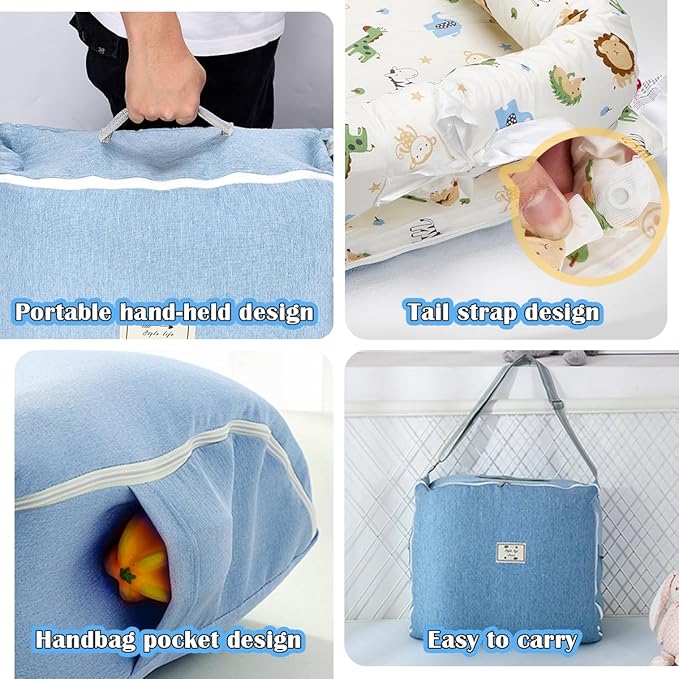 - Adjustable U-Shaped Safety Bumper: The surrounding U-shaped bumper features adjustable drawstrings, allowing you to tighten or loosen the fit based on your baby’s size, ensuring a safe and cozy experience