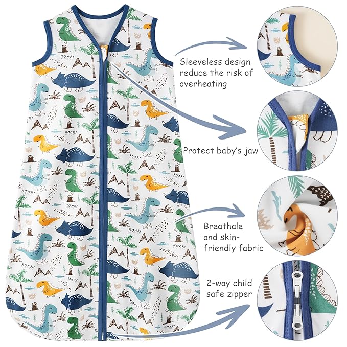 - Lightweight 0.5 TOG : 0.5 Tog baby sleeping bag is suitable for moderate temperatures of 75 to 80Β°F, which is an ideal choice for spring, summer, autumn or naps in air-conditioned rooms, helping to maintain a stable body temperature. The sleeveless design keeps your baby warm and comfortable while reducing the risk of overheating.