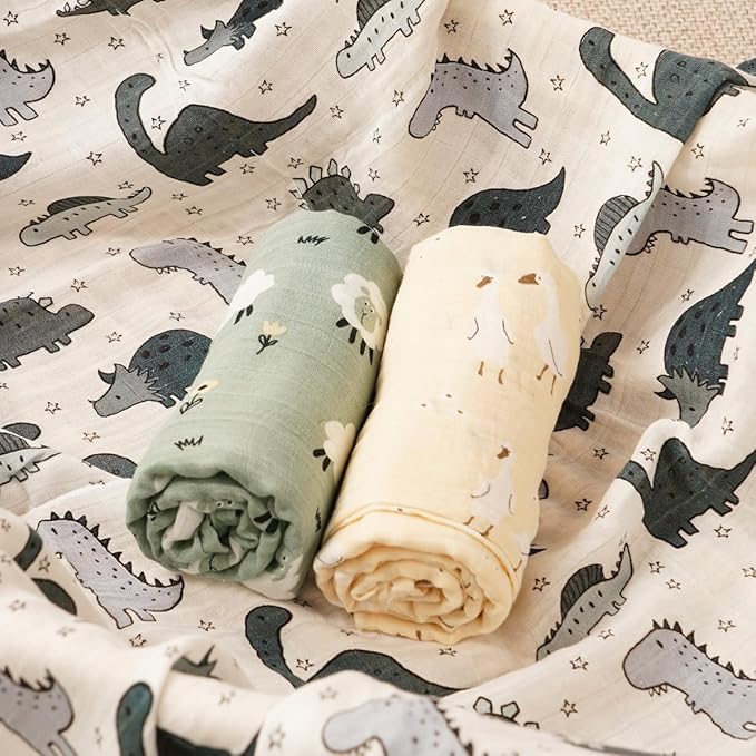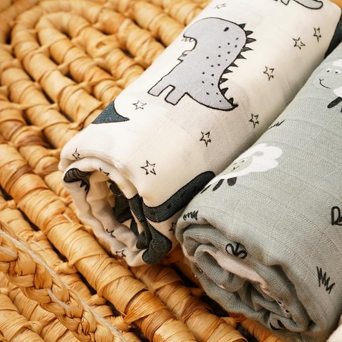 Muslin Swaddle Blankets for Baby Boys and Girls,3 Pack Breathable Soft Receiving Blanket,Large 43.3X 43.3 inches,Newborn Essentials Must Haves(Animal)