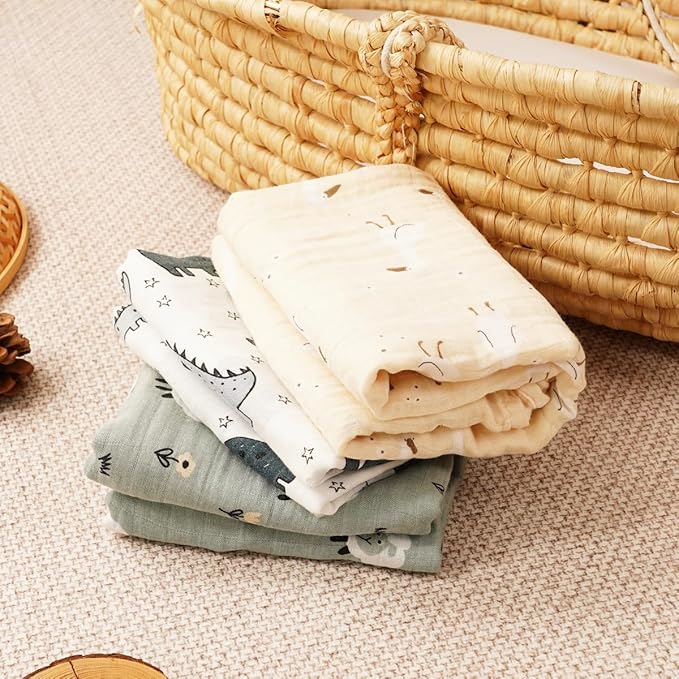- Lightweight, breathable, and absorbent: Each plain weave swaddle blanket is thin enough to provide sufficient breathability, fast drying speed, and quick preparation for next use, providing more flexibility for parents' daily use. It has excellent water absorption and can easily handle spills and dirt.