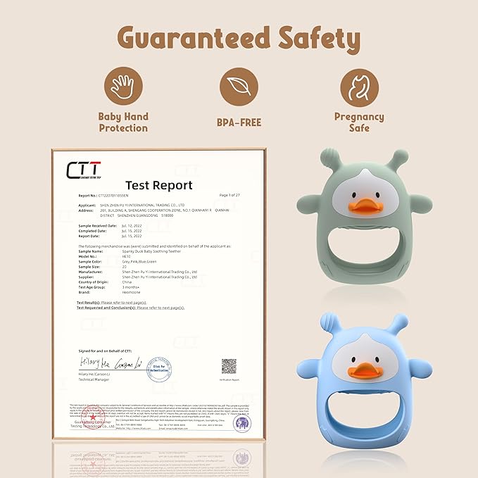 - FOOD-GRADE SILICONE FOR SAFE CHEWING: Made from 100% food-grade silicone, this baby hand teether is BPA-free and non-toxic. It’s been rigorously tested to meet the highest safety standards. The soft, durable material provides a gentle yet effective chewing experience. Designed with your baby’s comfort in mind, this teether gives parents peace of mind through every stage of teething