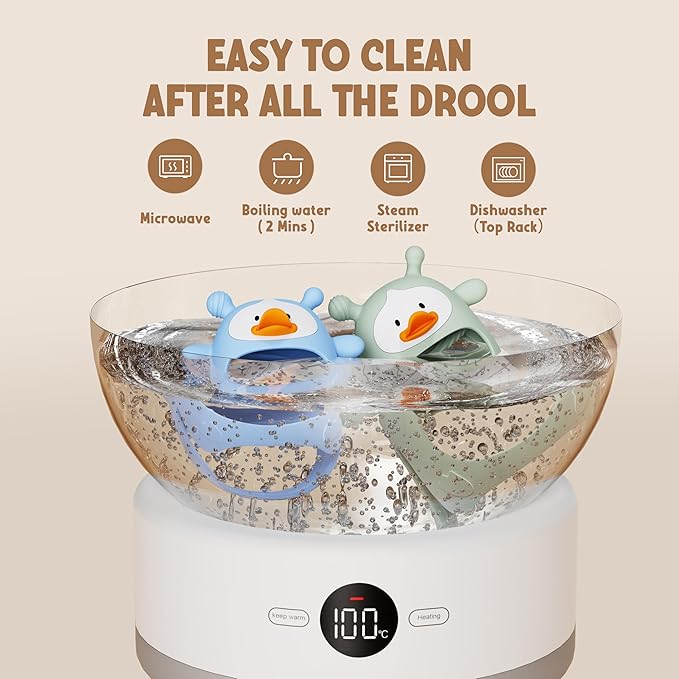 - EASY TO CLEAN: Cleaning your baby’s teether is easy! Made from food-grade silicone, it’s dishwasher-safe, freezer-safe, and can be sterilized with steam, boiling water, or UV light. The smooth surface cleans quickly and stays hygienic. Compact and perfect for diaper bags, it’s great for home and on-the-go. Safe and convenient for parents and babies