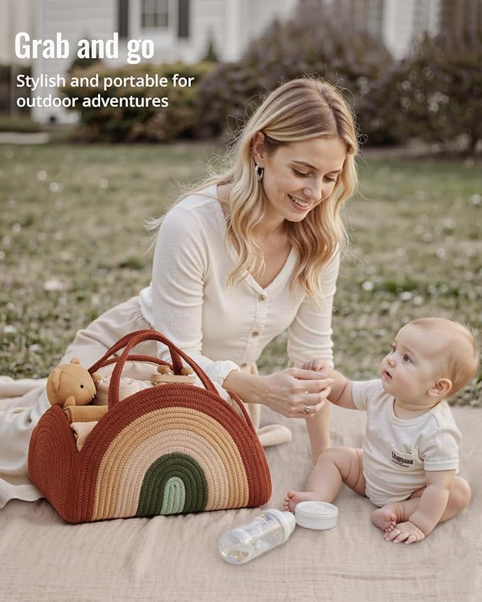 - Warm up your daily routine with thoughtful design:Inspired by boho rustic rainbows, this charming diaper caddy adds soft, natural beauty to your nursery. A newborn registry essential that brings calm, order, and heartwarming joy to every parenting moment.