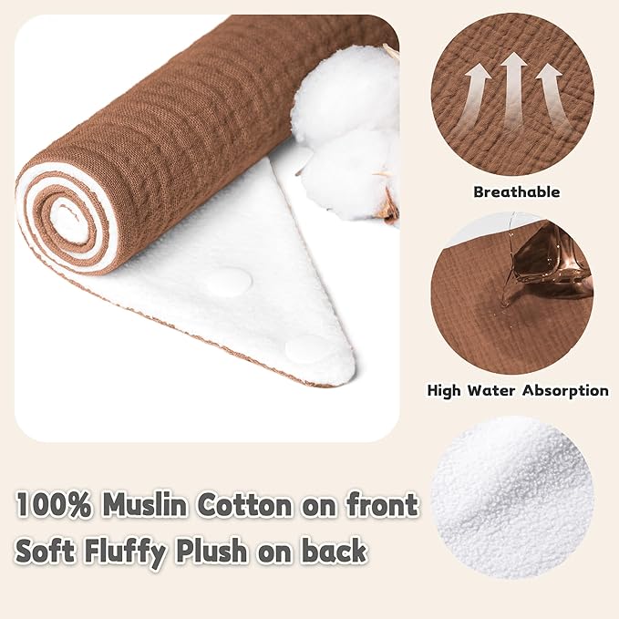 - Soft & Superior Absorbency: Our Susurration Muslin Baby Drool Bibs are crafted from 100% cotton muslin on the front, they are backed with water-resistant soft plush to ensure maximum absorption with a skin-friendly, gentle touch for your baby's skin. The dual-layered design ensures both you and your baby remain free from wet clothes all day long.