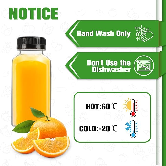 - 【Easy to Use and Clean 】-The plastic juice bottles will come with sponge cleaning brush and funnel, you can clean the juice bottle easily. The funnel can help you fill in the drinks easily into your juice bottles 8 oz