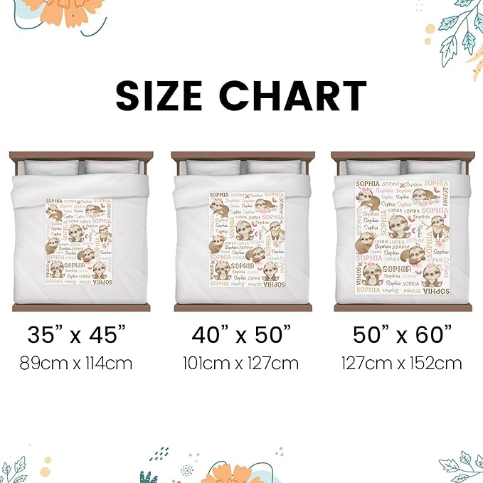 Personalized Baby Blanket for Girls Sloth Custom Baby Blankets with Name Dotted Backing Customized Gifts for New Mom Customize Baby Blanket for Kids Newborn Birthday