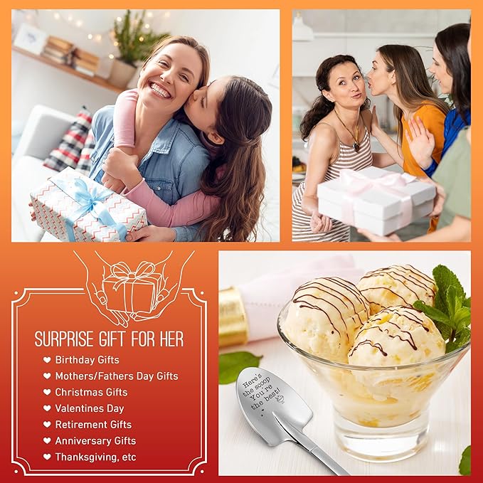 - Here's The Scoop You're The Best: Funny ice cream shovel spoon engraved the inspirational message will be a perfect gift idea for your mom, grandma, aunt, sister, daughter, friends, dad, grandpa, teachers, coworker, etc, on birthday, mothers day, fathers day, teacher appreciation week, employee appreciation coworker gifts