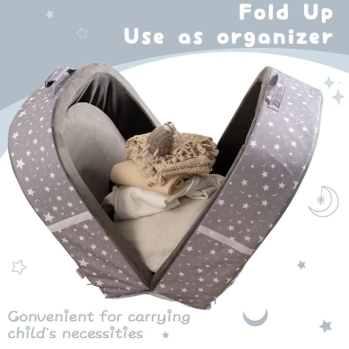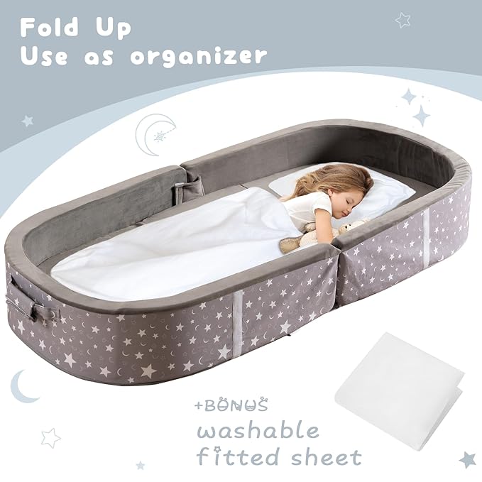- FOLDABLE FOR TRAVEL: This foldable, portable toddler travel cot is perfect for travel, camping, hotels, and any place you need a comfortable rest. It also offers convenient storage for some items