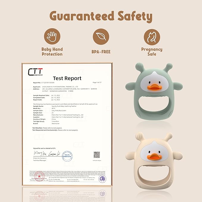 - FOOD-GRADE SILICONE FOR SAFE CHEWING: Made from 100% food-grade silicone, this baby hand teether is BPA-free and non-toxic. It’s been rigorously tested to meet the highest safety standards. The soft, durable material provides a gentle yet effective chewing experience. Designed with your baby’s comfort in mind, this teether gives parents peace of mind through every stage of teething