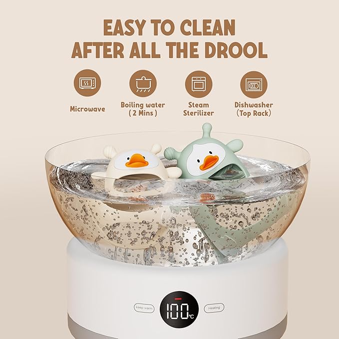 - EASY TO CLEAN: Cleaning your baby’s teether is easy! Made from food-grade silicone, it’s dishwasher-safe, freezer-safe, and can be sterilized with steam, boiling water, or UV light. The smooth surface cleans quickly and stays hygienic. Compact and perfect for diaper bags, it’s great for home and on-the-go. Safe and convenient for parents and babies
