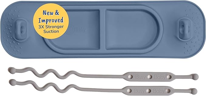 - Perfect Travel Size with Superior Suction: Now with 3x stronger suction power, Mini Mat stays firmly in place on smooth, non-porous surfaces. 1/3 the size of original Busy Baby Mat, rolls up into travel wet bag. Ideal for small travel trays and baby led weaning. *Will not work with Stokke or Lalo brand trays