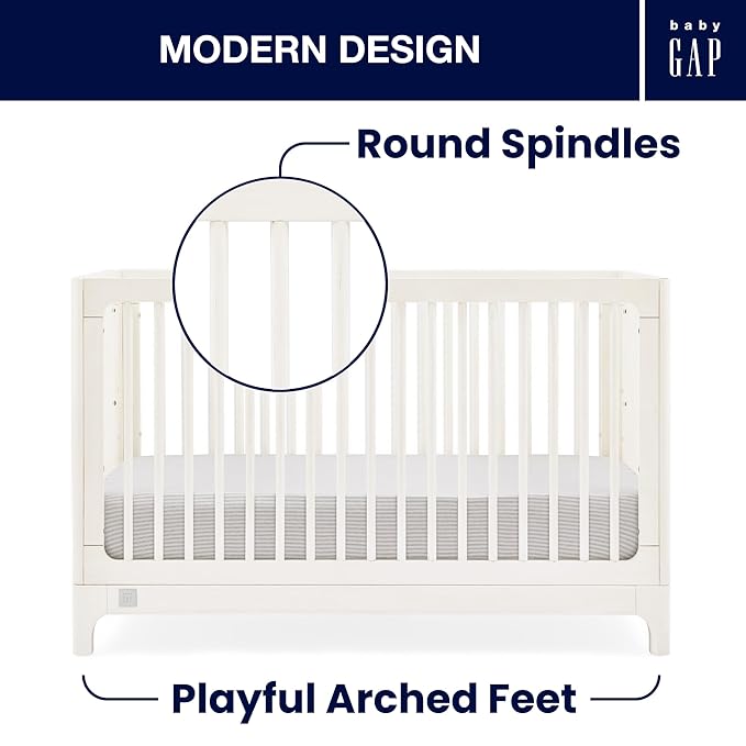 Delta Children babyGap Wren 4-in-1 Convertible Crib Greenguard Gold Certified, Antique White