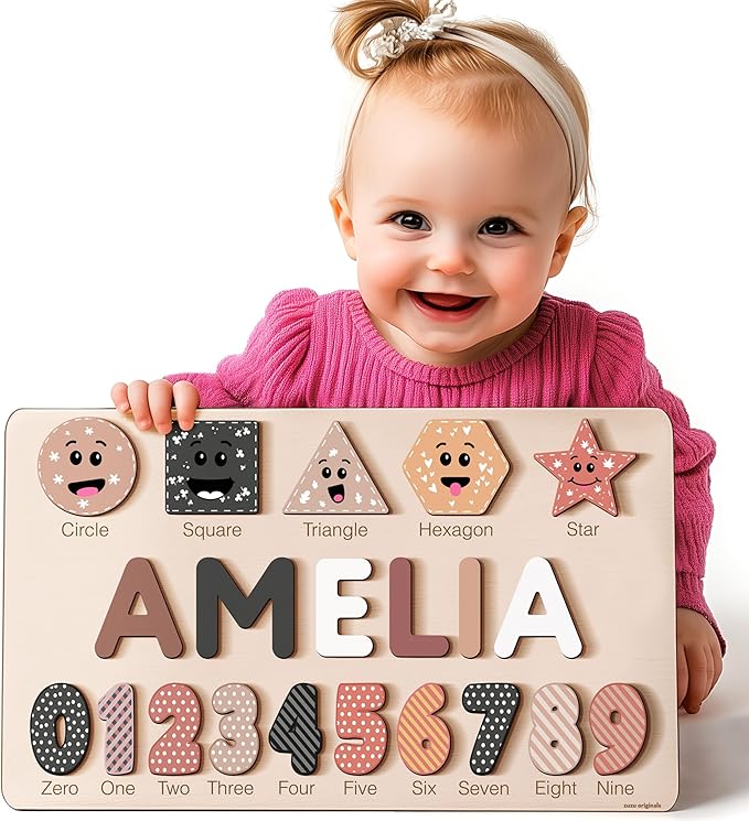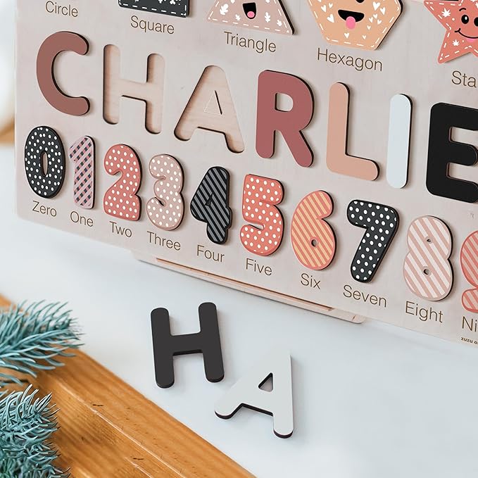 - A Toy with Educational Benefits: Our custom name puzzle enhances motor skills, coordination, and focus. Promotes problem-solving, self-confidence, and happiness Introduces shapes, names, and spelling Encourages exploration and curiosity.