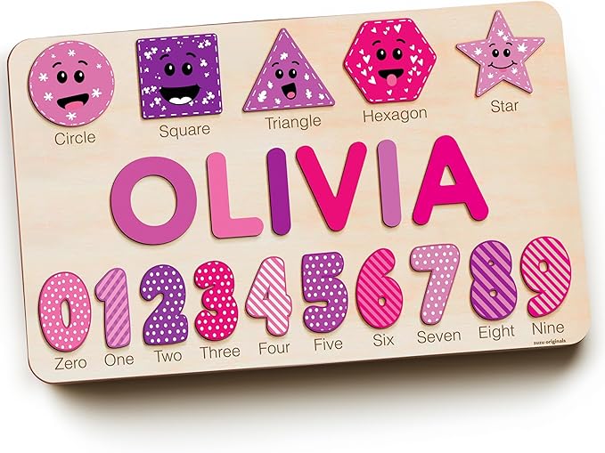 - A Toy with Educational Benefits: Our custom name puzzle enhances motor skills, coordination, and focus. Promotes problem-solving, self-confidence, and happiness Introduces shapes, names, and spelling Encourages exploration and curiosity.