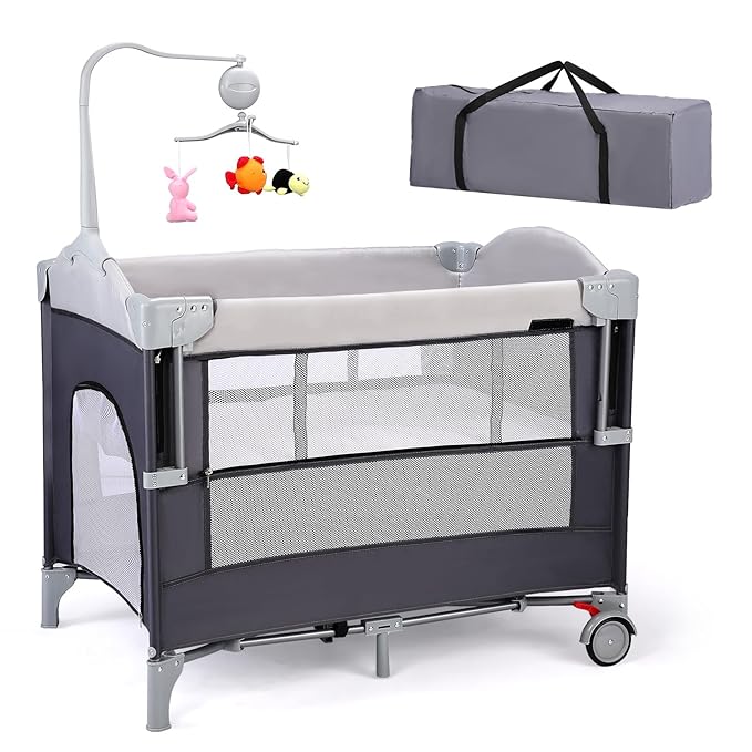 - Versatile & Multi-Purpose Design: This Pack and Play with Bassinet serves as a portable crib, playard, and bedside bassinet, making it perfect for infants and toddlers. It includes a removable bassinet for newborns (up to 15-20 lbs) and converts to a spacious playard as your baby grows. Ideal for travel, small homes, or everyday use