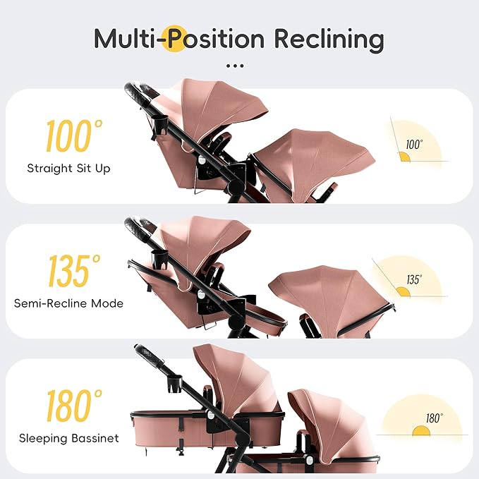 - Multi-Functional Stroller: This stroller boasts a three-position adjustable backrest, which can be easily adjusted to meet your baby’s needs for semi-reclining, sitting, or sleeping. It can be configured as two bassinets, two seats, or a combination, offering unparalleled comfort and convenience for children.
