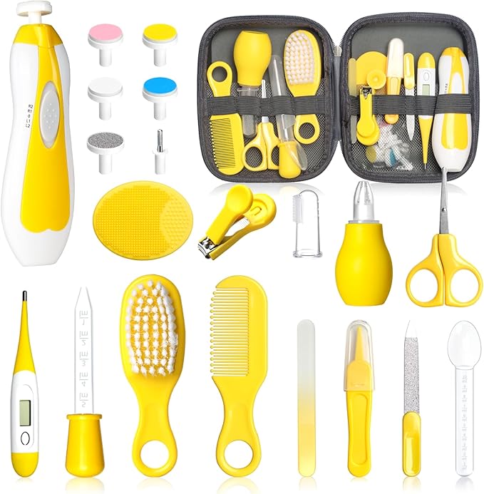 Baby Healthcare and Grooming Kit, 21pcs Baby Electric Nail Trimmer Set Newborn Nursery Health Care Set for Newborn Infant Toddlers Baby Boys Girls Kids Haircut Tools (21 Kits Yellow)