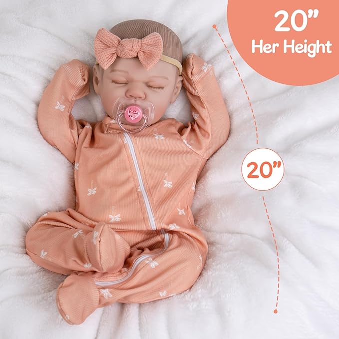 Aori Weighted Reborn Baby Doll - 20 Inch Realistic Lifelike Newborn Girl with Clothing, Soft Body Doll for Girls Age 3+, Best Gift for Christmas/Birthday/Baby Shower