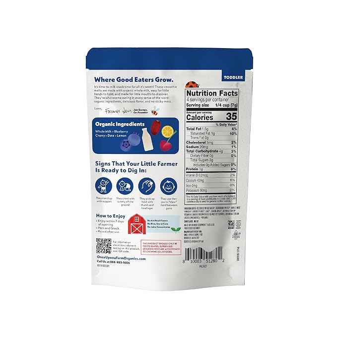 Once Upon A Farm Organic Smoothie Melts, Blueberry Burst, No Added Sugar, Kosher, USDA Certified Organic, Non-GMO, 1 Ounce (Pack of 8)