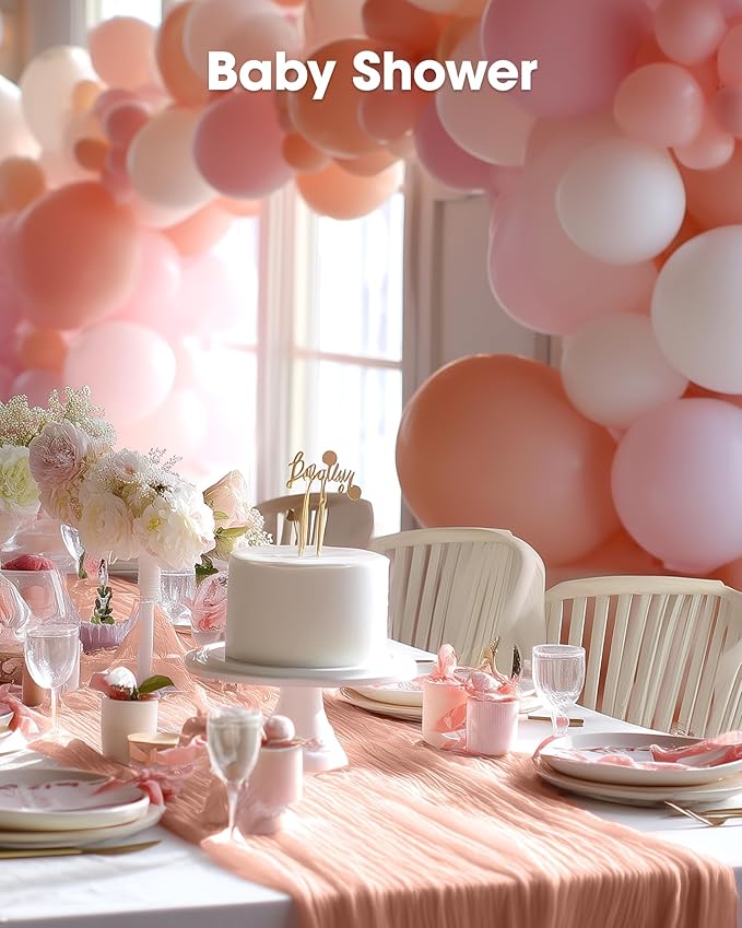 Pureegg 3-Pack Cheese Cloths Table Runner, 120'' Boho Table Cloth Decorations for Party, Baby Shower, Wedding and Farmhouse, Fabric Room Decor, Dusty Pink