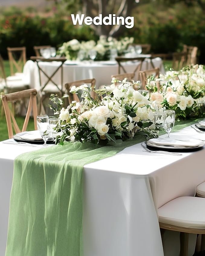 Pureegg 2-Pack Cheese Cloths Table Runner, 120'' Boho Table Cloth Decorations for Party, Baby Shower, Wedding and Farmhouse, Fabric Room Decor, Sage Green